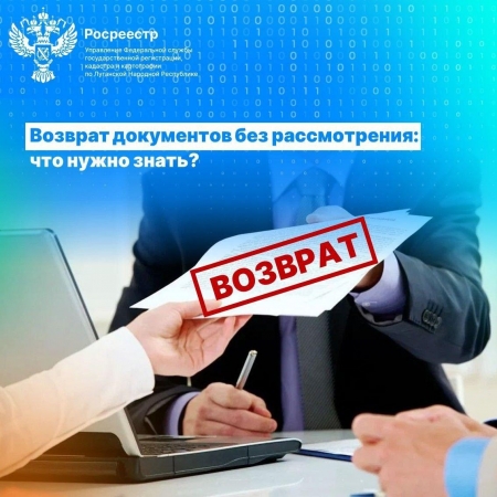 Управление Росреестра по ЛНР информирует граждан о важных основаниях для возврата документов без рассмотрения➡️ Согласно действующему законодательству существует семь оснований для возврата документов, указанных в ст. 25 Федерального закона от 13.07.2015 N 218-ФЗ «О государственной регистрации