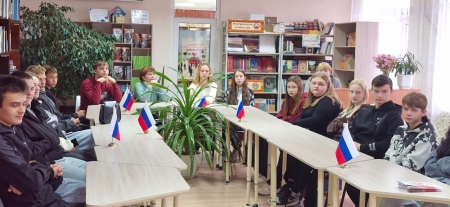 5 ноября в рамках празднования Дня народного единства в Славяносербской ЦБ состоялся историко-информационный час «В единстве народов – сила России» для студентов Славяносербского техникума ЛГАУ.Ребята ознакомились с историей праздника, посмотрели видеоролики и послушали стихи, также поучаствовали в