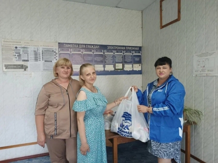 Продуктовые наборы от «Единой России» получили переселенцы в Зимогорье