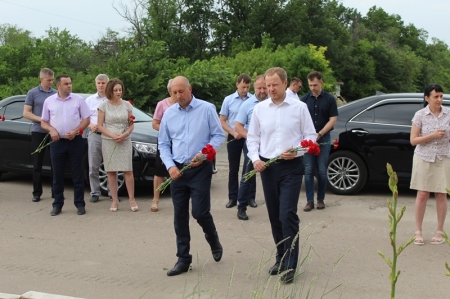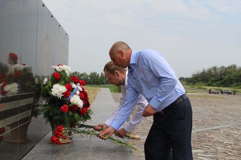 Так, после подписания Соглашения о сотрудничестве представители Алтайского края и Администрации Славяносербского района совместно с юнармейцами, жителями и гостями района проехали к всемирно известному памятнику политработникам Советской армии «Комбат» для того, чтоб в этот скорбный день почтить память солдат, отдавших жизни за Великую Победу.