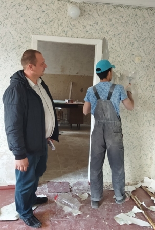 09 сентября 2022 года начальник отдела по обеспечению жизнедеятельности п. Металлист Николай Ильяшов проверил ход выполнения ремонтных работ в ГУ ЛНР «Славяносербский районный Центр культуры и досуга» Металлистский Дом культуры.