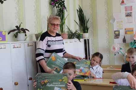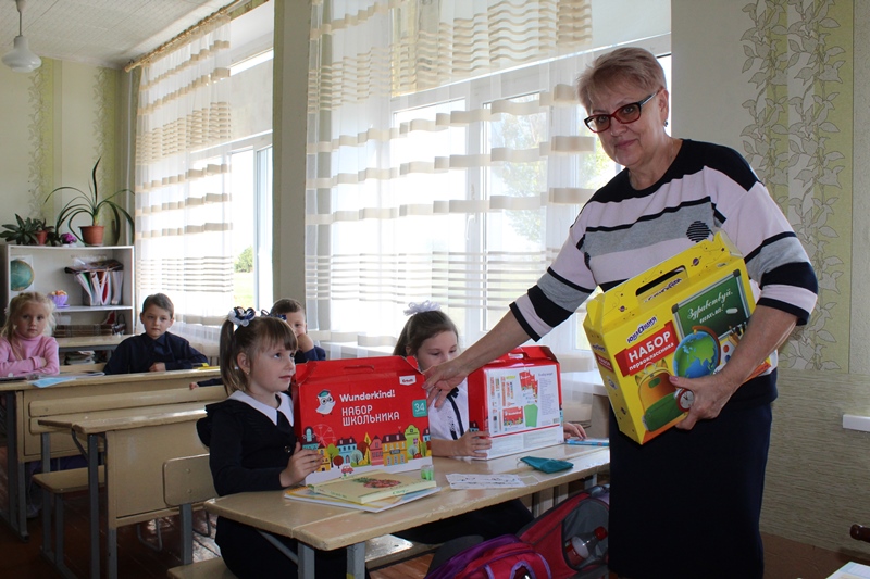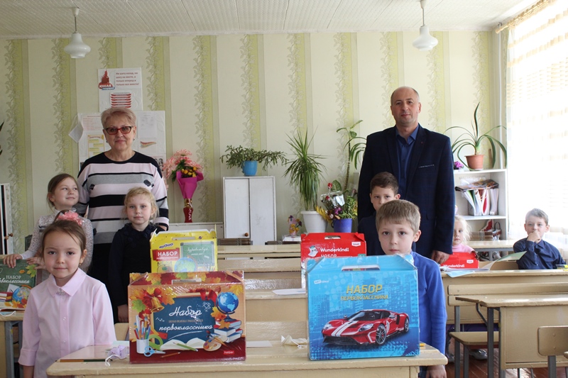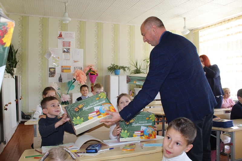 7 октября 2022 года, Глава Администрации Славяносербского района Сергей Крамаренко совместно с председателем Совета женщин при Администрации Татьяной Деревянко вручили первоклассникам города Зимогорье канцелярские наборы, собранные Алтайским краевым отделением Союза женщин России.