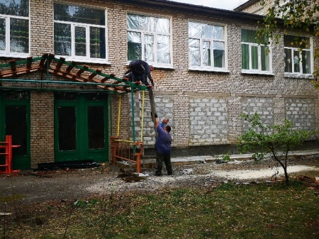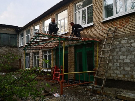 В ходе рабочего визита Глава Администрации Сергей Крамаренко встретился с директором Зимогорьевской гимназии им. «Воинов Интернационалистов» и проконтролировал ход ремонтно-восстановительных работ. В настоящее время полностью выполнены работы по устройству отмостки и цоколя здания. Ведутся работы по ремонту стен здания, частичной замене окон, ремонту спортзала. Приступили к ремонту кровли: выполняется замена стропильной системы с дальнейшим покрытием профлистом.
