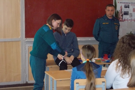 Далее перед школьниками выступила фельдшер Славяносербского ГПСО, она объяснила детям, что любой человек может оказаться на месте происшествия, где пострадали люди и до прибытия бригады скорой медицинской помощи он обязан оказать им первую помощь, в том числе психологическую поддержку. И помощник не должен усугубить состояние пострадавшего, а для этого необходимо знать, как правильно это сделать. Первая доврачебная помощь представляет собой простейшие мероприятия, необходимые для сохранения здоровья и спасения жизни человека, перенесшего внезапное заболевание или травму. Спасение пострадавшего в большинстве случаев зависит от того, насколько быстро и правильно будет оказана первая помощь. В ходе встречи с детьми обсудили, как оказать доврачебную помощь пострадавшим при переломах, напомнили о способах наложения шин, о действиях при оказании помощи во время кровотечения. Ребята внимательно слушали спасателей, задавали интересующие их вопросы. В завершение все получили листовки с правилами безопасного поведения и номерами вызова экстренных служб.