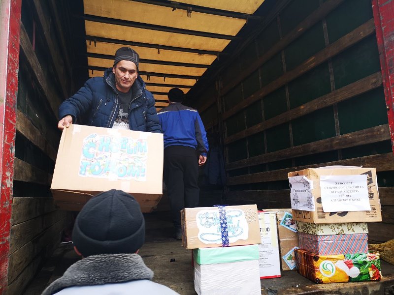 Прибывший груз был сформирован при поддержке губернатора Алтайского края Виктора Томенко краевым отделением Союза женщин России, муниципальными советами женщин.