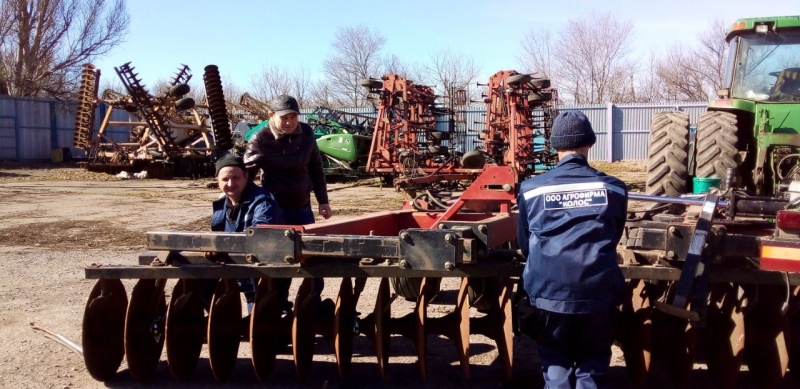 В ходе рабочей поездки в «ООО АФ Колосок-2022» при общении с руководителем предприятия Валерием Шульгой были затронуты вопросы об обеспечении семенами, удобрениями, горючесмазочными материалами. Руководитель хозяйства дал краткую информацию о подготовке и проведении весеннее-полевых работ. Валерий Николаевич сообщил, что успех работы предприятия в первую очередь зависит от людей и техники. Не взирая на отсутствие квалифицированных специалистов, хозяйство делает все для того чтоб техника была своевременно отремонтирована и поставлена на линейку готовности. В этом мы убедились при посещении машинного двора, где полным ходом идет ремонт техники и сельхозинвентаря. Созданы все условия для проведения ремонта. Механизаторы обеспечены необходимым инструментом а также спецодеждой. Поскольку хозяйство полностью завершило подкормку озимых культур, как сообщил руководитель, приступили к проведению работ по уходу за многолетними садовыми насаждениями, общая площадь которых составляет 29,15 га. Из них: яблоня 26.9 га, слива 0,75 га, орех 1,5га.