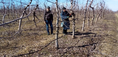 Руководитель хозяйства отметил, что все работы в саду стараются провести в оптимальные сроки с соблюдением агротехнических требований. На сегодняшний день уже завершается санитарная обрезка деревьев, проводится растяжка и подвязка веток, выполнена подпорка растений. Также Валерий Николаевич сообщил, что в прошлом году из-за весенних заморозков практически погиб весь урожай фруктов, поэтому есть опасение заморозков и этой весной. Руководством предприятия было принято решение выполнить ряд неотложных мероприятий по предупреждению и снижению вероятности повреждения растений от заморозков при цветении сада. В настоящее время по «кварталам» развезена солома прошлых лет для дальнейшего ее сжигания и создания дымовой завесы.