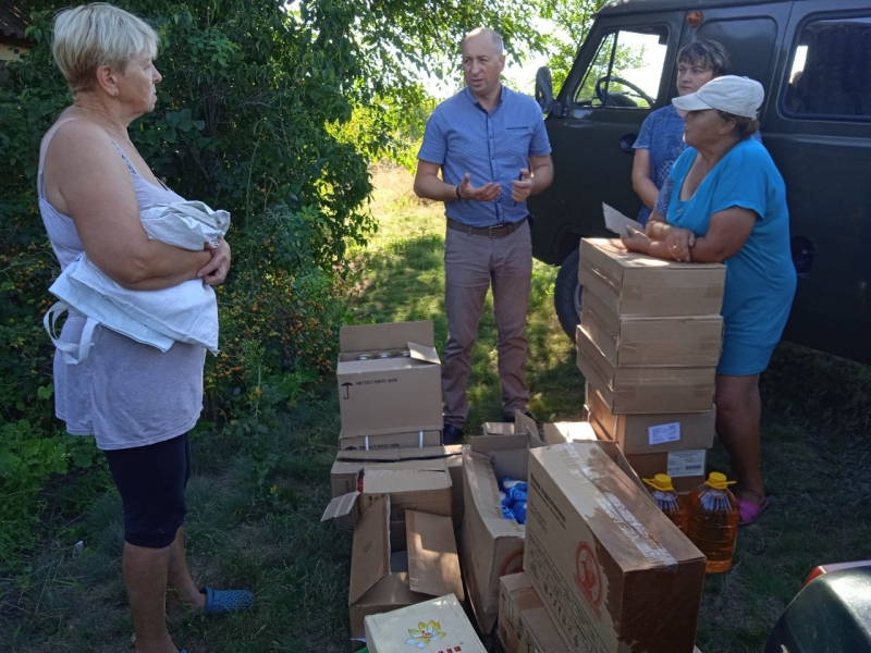 Также в селе Орехово-Донецкое Глава района вручил гуманитарную помощь в виде продуктов питания социально не защищённым группам населения и перемещенным лицам.
