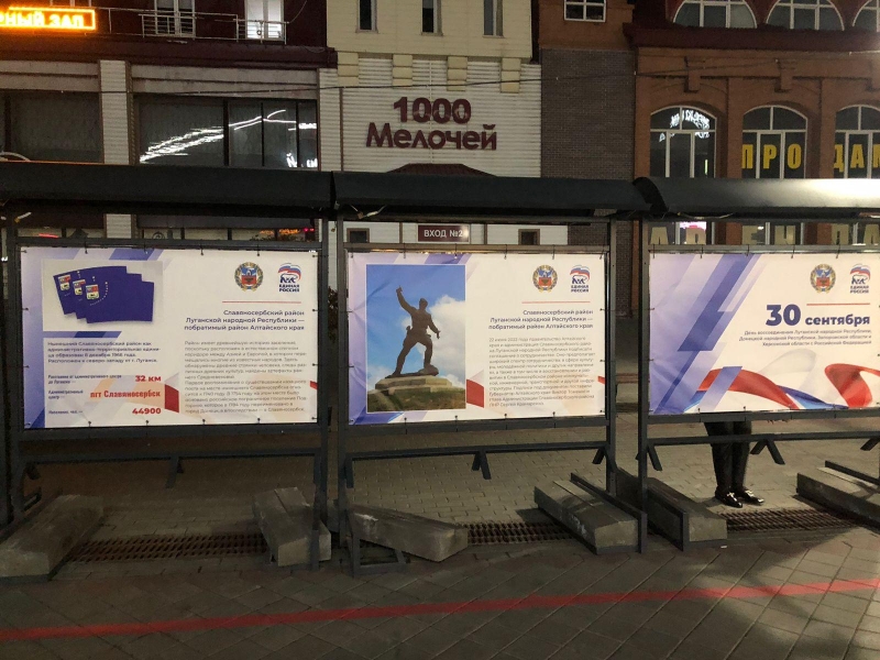 В столице шефского региона — Барнауле — появилась уличная экспозиция, рассказывающая о Славяносербском районе. Её создание приурочено к празднованию Дня воссоединения новых регионов с Россией.