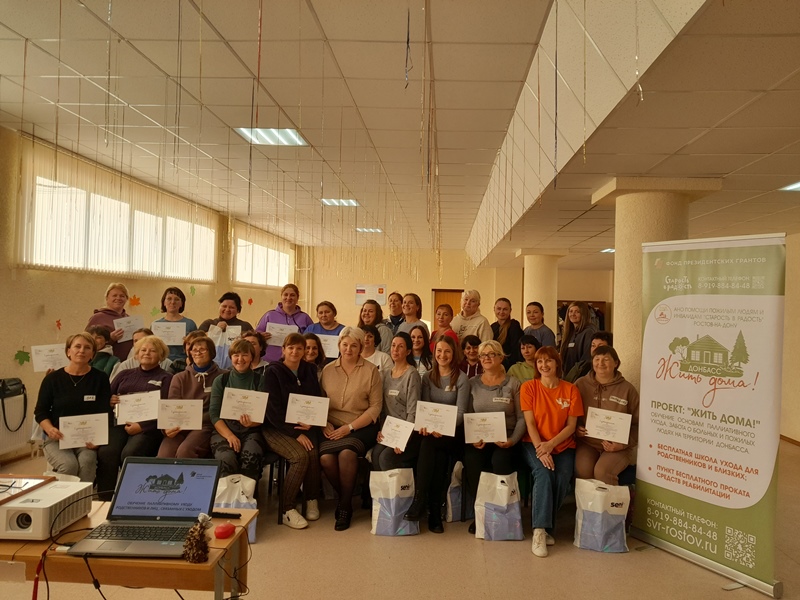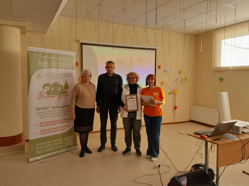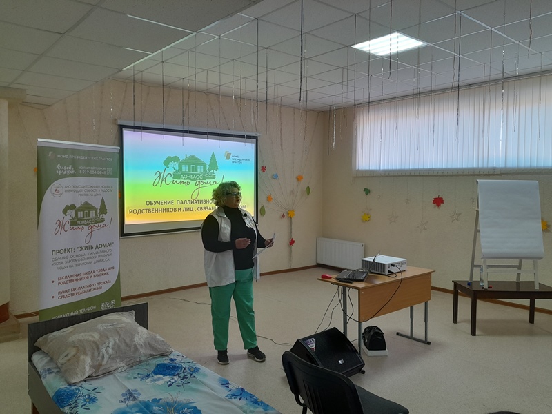В Славяносербском районе на базе Государственного учреждения Луганской Народной Республики «Славяносербский комплексный центр социального обслуживания населения (предоставления социальных услуг)» прошла программа обучения, в рамках проекта «Жить дома! Обучение основам паллиативного ухода, забота о больных и пожилых людях», при поддержке фонда Президентских грантов. Проект реализуется по всей территории Луганской Народной Республики на протяжении года.