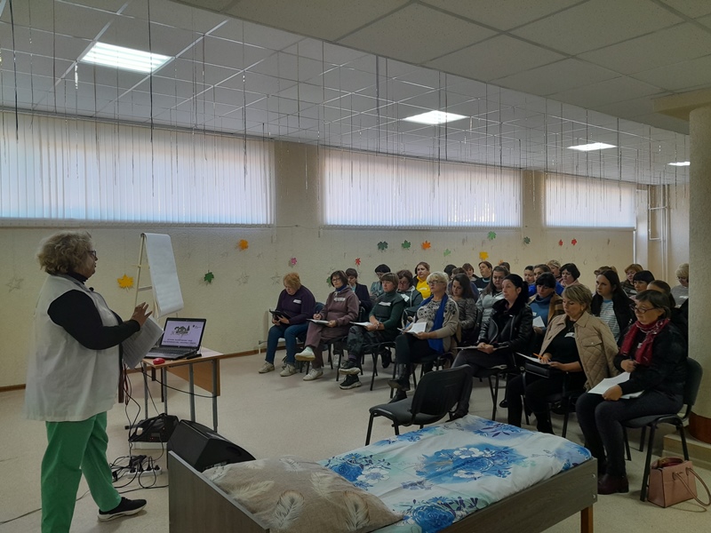 На протяжении трех дней слушателями тренинга стали 30 специалистов учреждения, которые прошли обучение по вопросам ухода за больными людьми, ранеными, нуждающимся в долговременном уходе, получили практические навыки по уходу за лежачими больными. По окончании тренинга вручены сертификаты об обучении.