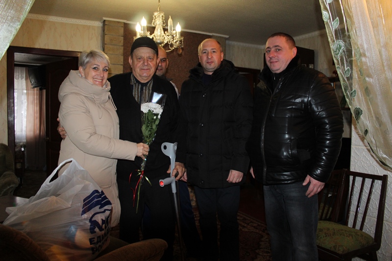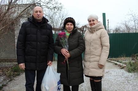 Руководители округа вручили ветеранам цветы и продуктовые наборы.