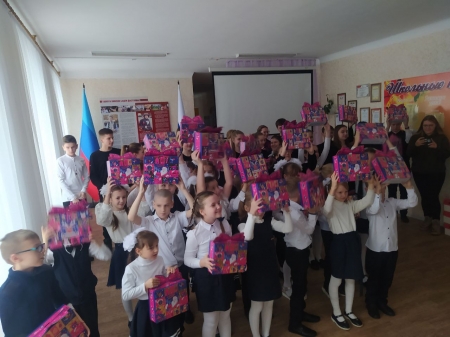 Гости из Москвы поздравили школьников с наступающими новогодними праздниками и вручили им сладкие подарки.
