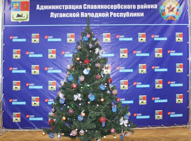 В фойе Администрации Славяносербского района установлена елка, которая украшена не только игрушками и гирляндами, на ней развешаны шары с мечтами детей Славяносербского района.