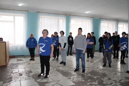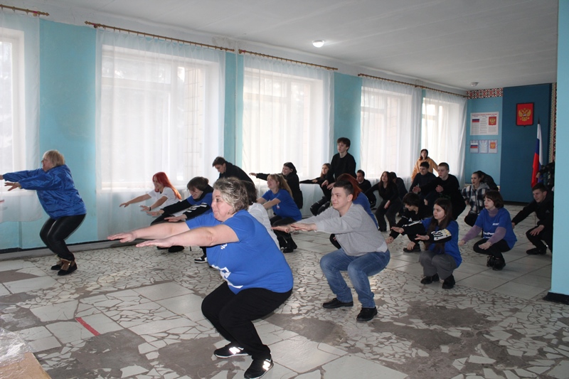 Вместе с активистами ребята выполнили комплекс общеукрепляющих упражнений для разных групп мышц.
