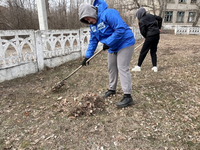 Активисты «Молодой гвардии Единой России» провели субботник по благоустройству сквера Героев Донбасса в Славяносербске.