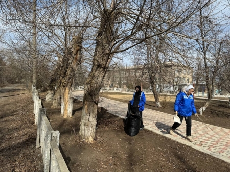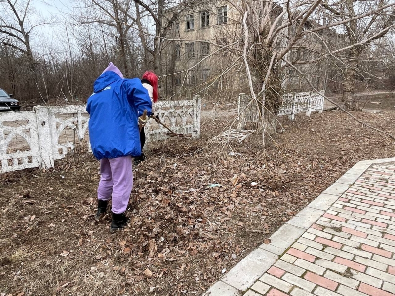 Ребята убрали прошлогодние листья и сухостой, подмели тротуары, погрузили собранный на трактор мусор, подбелили деревья.