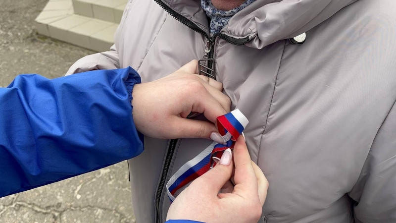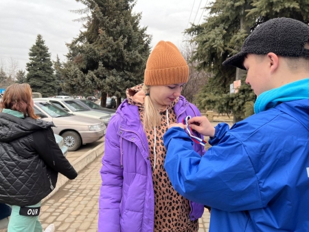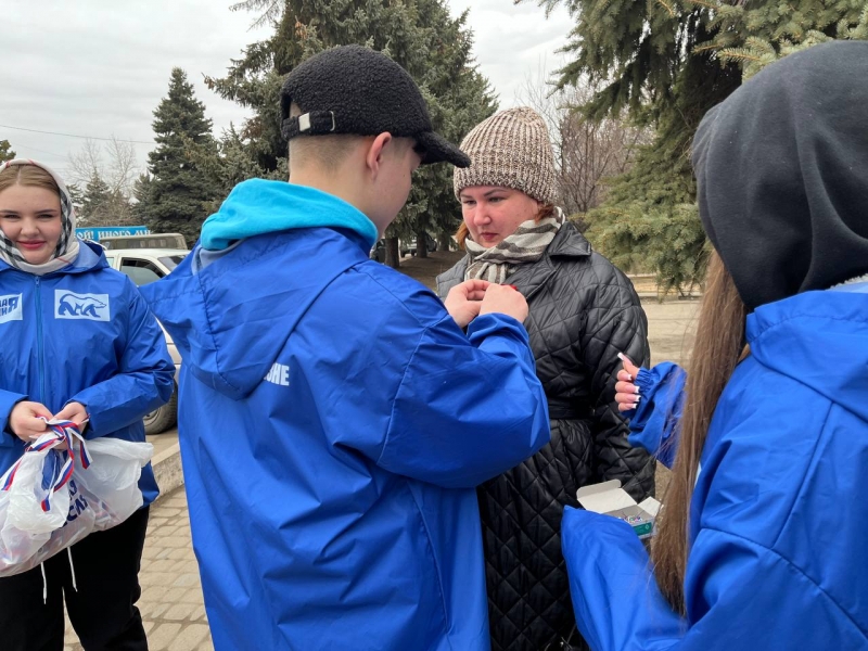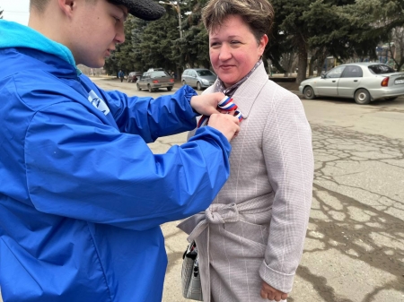 В рамках акции «Русская весна – начало пути домой» активисты «Молодой гвардии Единой России» раздали ленты-триколоры жителям поселка Славяносербск и гостям районного центра, как напоминание о событиях Русской весны.