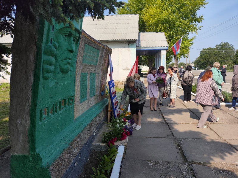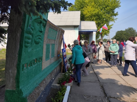 Возложили цветы к памятнику односельчан, погибших во время Великой Отечественной войны в сопровождении музыки военных лет и о войне.