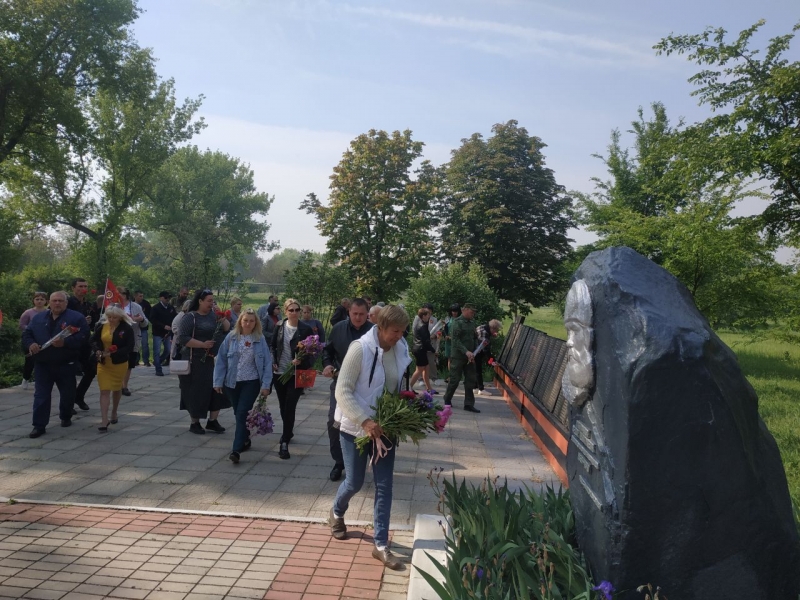 Присутствующие почтили минутной молчания память погибших и возложили цветы к братской могиле советских воинов в парке Победы города Зимогорье.