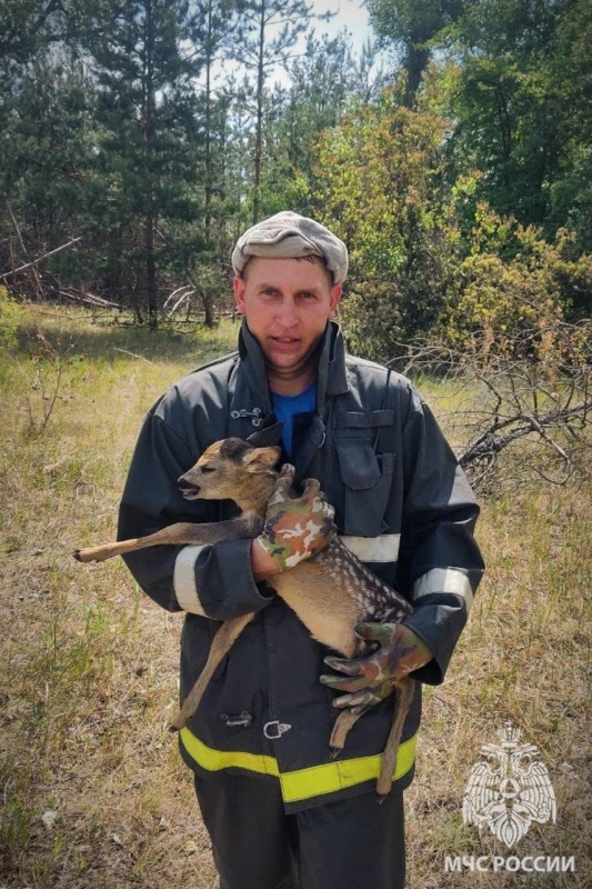 В некоторых местах огонь подступил к домам на расстояние около 500 метров. Но пожарные, работая на пределе сил, не дали перекинуться пламени на жилой сектор. Мало того, в дыму и гари они обнаружили олененка и зайчонка, спасающихся от пожара и вышедших к людям за помощью. Звери были истощены, обезвожены и крайне обессилены. Спокойно дали взять себя на руки и осмотреть. У зайчонка обгорели лапки, олененок был весь в ссадинах. Пожарные оказали необходимую медицинскую помощь чудом спасшимся малышам, очистили их от клещей, напоили и вывезли в зеленую часть леса, не пострадавшего от огня.