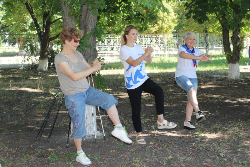 В рамках летнего спортивного марафона «Сила России» активисты Славяносербского местного отделения «Единой России» и МГЕР 10 июля провели зарядку для ветеранов.