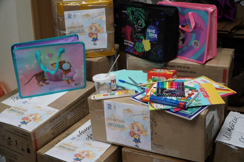 Жители шефского региона третий год помогают собрать в школу детей Славяносербщины. Накануне краевое отделение Союза женщин России передало в муниципальный округ книги, рюкзаки с учебными принадлежностями и сладкими подарками.