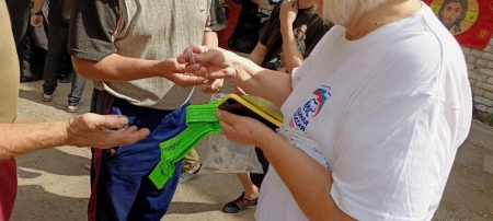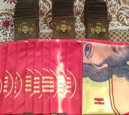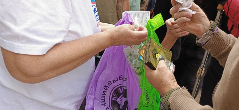 От Свято-Вознесенского храма г. Луганск передали ребятам гуманитарную помощь, флаги и обереги - иконки, крестики и шевроны с изображением Святых.