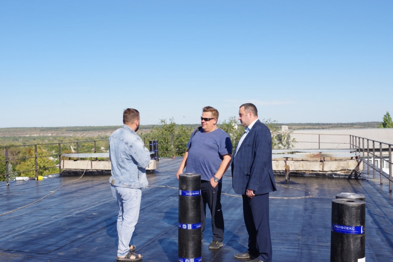 На данный момент на объекте ведутся работы по замене мягкой кровли и ремонту отмостки. Планируется замена входных групп в подъезде, а также установка оконных блоков в бесхозяйных квартирах. Кровля на доме выполняется по современным нормативам. Здесь запланирован водосток, чтобы избежать замачивания фасадов, установлено ограждение.