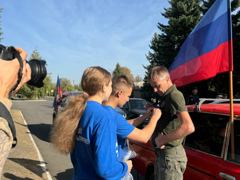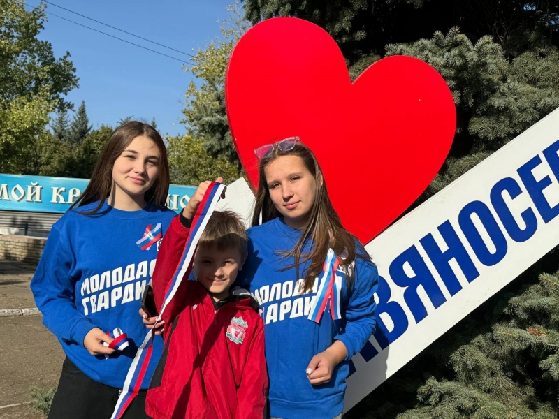 Активисты «Молодой гвардии Единой России» поздравили жителей Славяносербщины с Днем воссоединения Луганской Народной Республики с Российской Федерацией и раздали на улицах населенных пунктов муниципалитета ленты-триколоры.