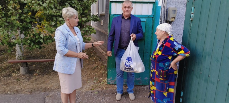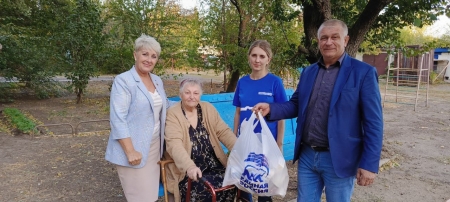 В День пожилого человека единороссы Славяносербщины посетили на дому ветеранов труда, поздравили их с праздником и вручили им от Партии продуктовые наборы и средства бытовой химии.