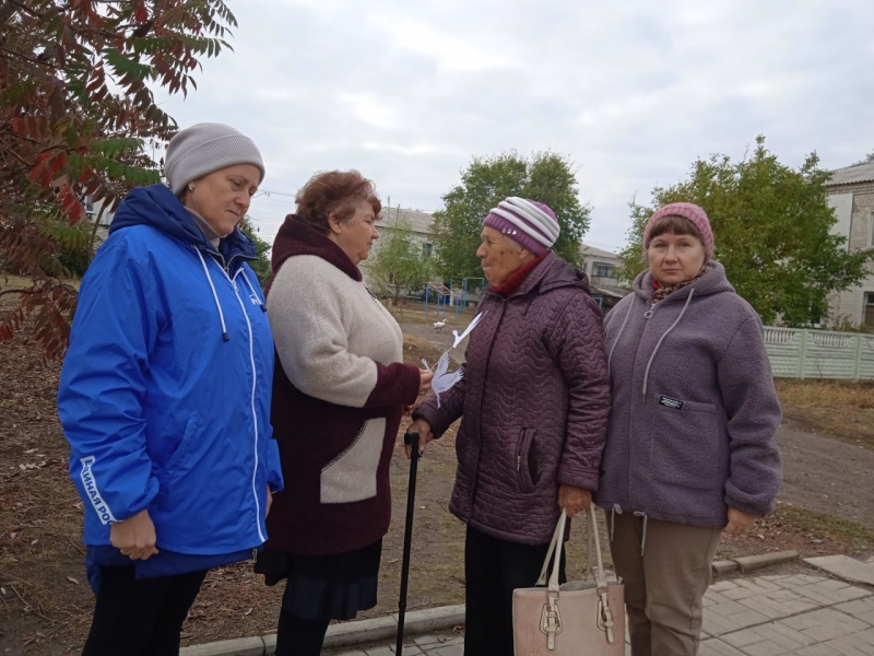 Активисты первичного отделения «Единой России» совместно с сотрудниками сельского клуба в День памяти белых журавлей провели информационную акцию на улицах села Желтое.