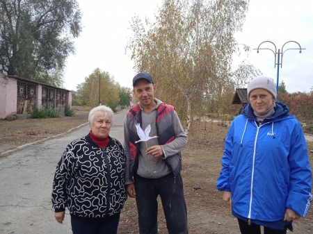Они рассказали односельчанами историю возникновения праздника и раздали бумажных белых журавлей, символизирующих памятную дату.
