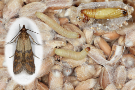 В нашей зоне в зерне злаковых культур чаще всего встречаются амбарный долгоносик, зерновой точильщик, рыжий мукоед, малый мучной хрущак, клещи, амбарная моль.