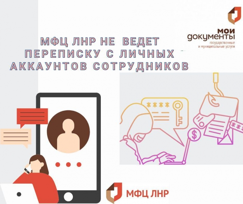 Обращаем внимание жителей Луганской Народной Республики на то, что Многофункциональный центр предоставления государственных и муниципальных услуг не ведет переписку с гражданами с личных аккаунтов своих сотрудников.МФЦ ЛНР отправляет официальные уведомления только своим заявителям, и только двумя способами: