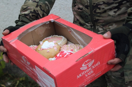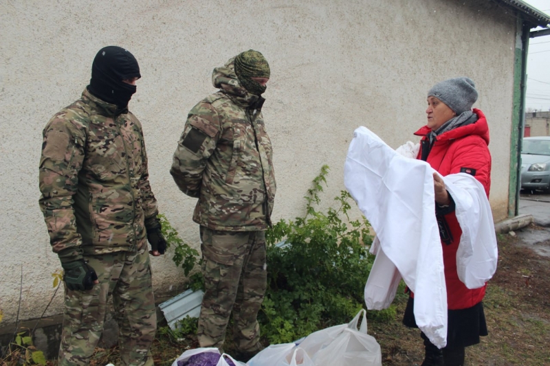 В рамках акции «Zа Победу» в День народного единства единороссы Славяносербщины передали бойцам на передовую маскировочные халаты от ветеранов и украшенные детворой домашние пряники.