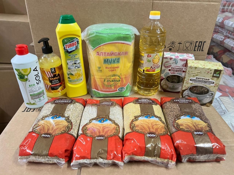 В каждый комплект входит бытовая химия и продукты: мука, макароны, крупы, чай, подсолнечное масло. Их получат родные участников спецоперации, которые погибли на передовой – всего несколько сотен семей. Ещё раз поддержать их решили администрация округа, «Женское движение Единой России» и Комитет семей воинов Отечества в шефском регионе. На призыв принять участие в акции откликнулись алтайские предприятия.