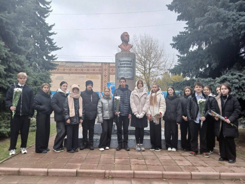 В этот день учащиеся Славяносербской школы имени Дмитрия Полянского собрались у бюста выдающегося земляка, чтобы возложить цветы. Это событие собрало не только учащихся, но и жителей, которые пришли выразить свою благодарность и почтение великому человеку.