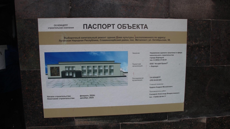 Ранее специалисты региона-шефа отремонтировали кровлю, заменили двери и окна, полностью отремонтирован фасад здания. Сейчас заканчиваются работы по подготовке к запуску отопления: в здании установлена новая модульная котельная. Из-за большого объема выполняемых работ, ремонт продолжится в 2025 году. Планируется завершить внутреннюю отделку спортзала и перехода. По словам директора Дома культуры Александра Павленко, после ремонта здание будет полностью соответствовать всем ГОСТам.