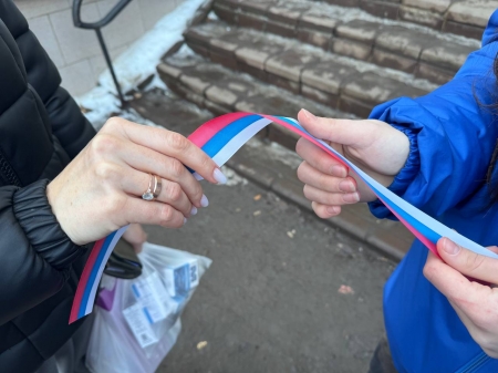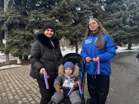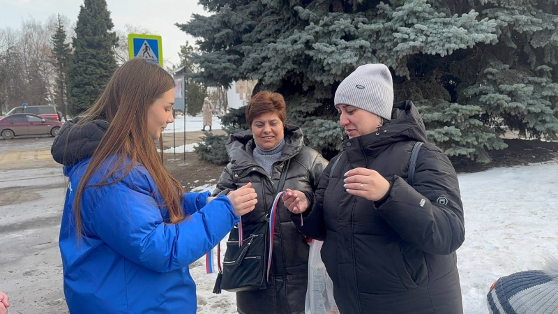 В рамках проекта «Историческая память» активисты «Молодой гвардии Единой России» поздравили жителей Славяносербска с 11-ой годовщиной Русской весны и раздали ленты-триколоры.
