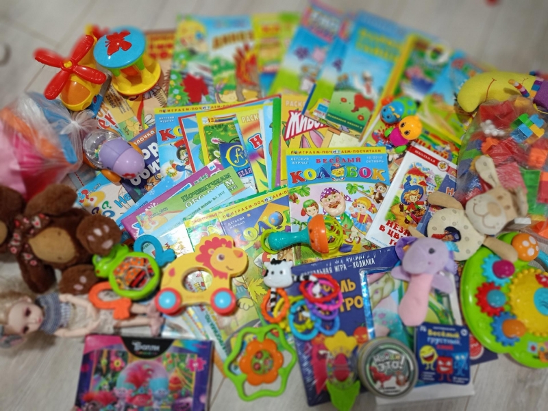 В мешках и коробках плюшевые животные, куклы, машинки, пазлы, развивающие игры, книги, раскраски, карандаши, краски и фломастеры. В рамках проекта «Мишка для малышки» их передали неравнодушные жители городов и сельских районов шефского региона. Сбор шёл в организациях и муниципалитетах.