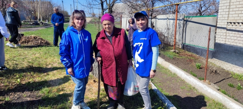 Активисты убрали ветерану придомовую территорию и с добрыми пожеланиями вручили ей продуктовый набор.