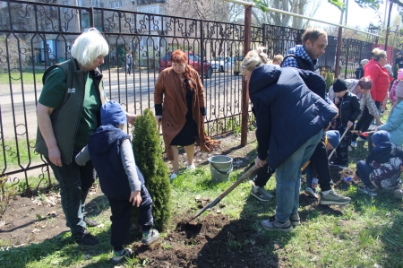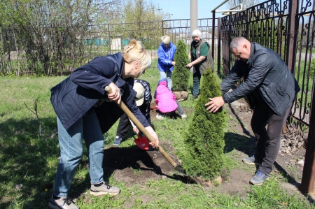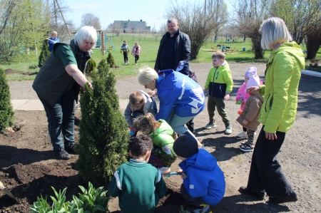 Вечнозеленые красавицы-туи для проведения акции подарил детским садам предприниматель поселка Родаково Юрий Цемкало.