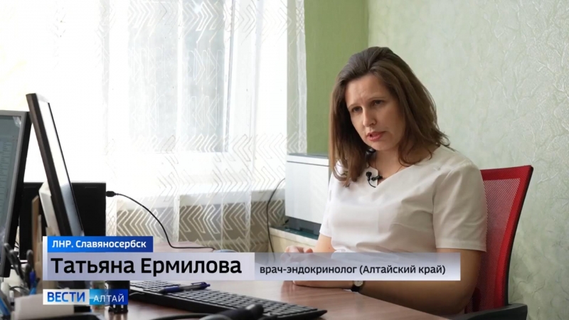 Весь апрель в округе работает восемь врачей из шефского региона. О четвёртой по счёту командировке сибирских медиков накануне рассказали в эфире телепрограммы «Вести Алтай». Врач общей практики, эндокринолог, отоларинголог, врач-УЗИ, офтальмолог, терапевты консультируют пациентов в Славяносербске. Среди людей, приходящих на приём, есть те, кому назначали леченее во время прошлого визита в округ.