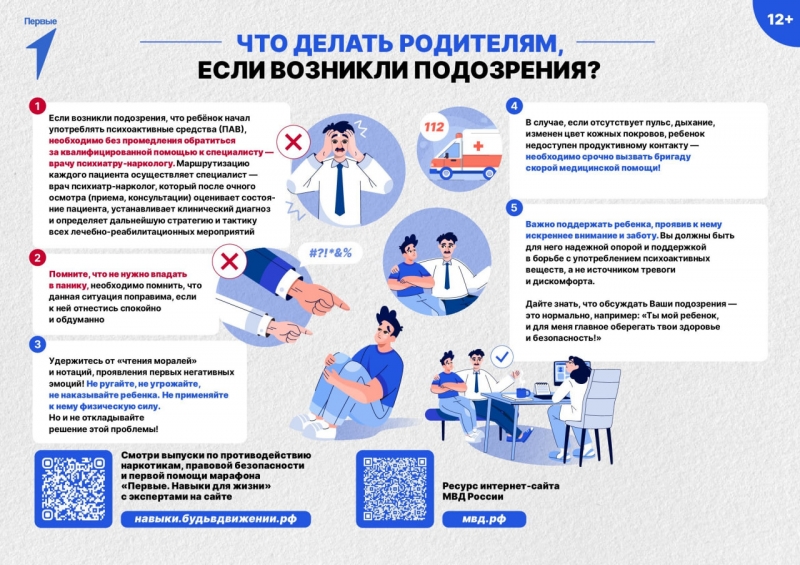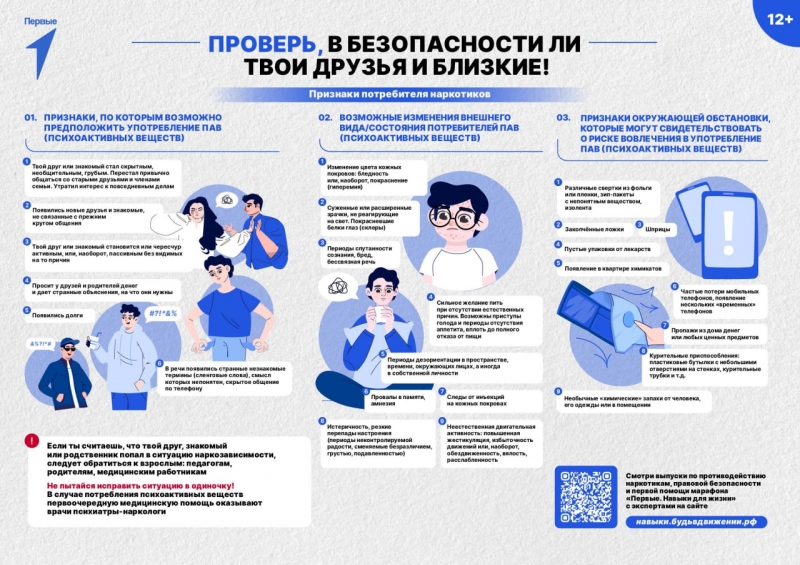 В рамках кампании можно изучить представленную на сайте организатора информацию по антинаркотической безопасности, посмотреть Выпуск онлайн-марафона «Первые. Навыки для жизни» о противодействии наркотикам, проверить безопасность своего окружения по предложенным признакам на предмет возможного потребления наркотических веществ, также здесь представлен подробный алгоритм действий для родителей при обнаружении малейших признаков употребления их детьми, размещена информация об уголовной и административной ответственности за совершение преступлений и правонарушений в сфере незаконного оборота наркотиков.