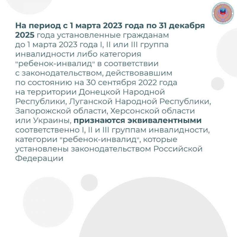 Министерство труда и социальной политики Луганской Народной Республики напоминает о необходимости до 01.01.2026 переоформить документы об инвалидности на российские.