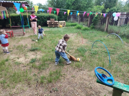 На «Спортивной станции», детей ждал «Карлсон», с которым дети размялись, сделали зарядку, поиграли в «Змейку» и с мячом.