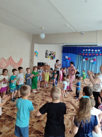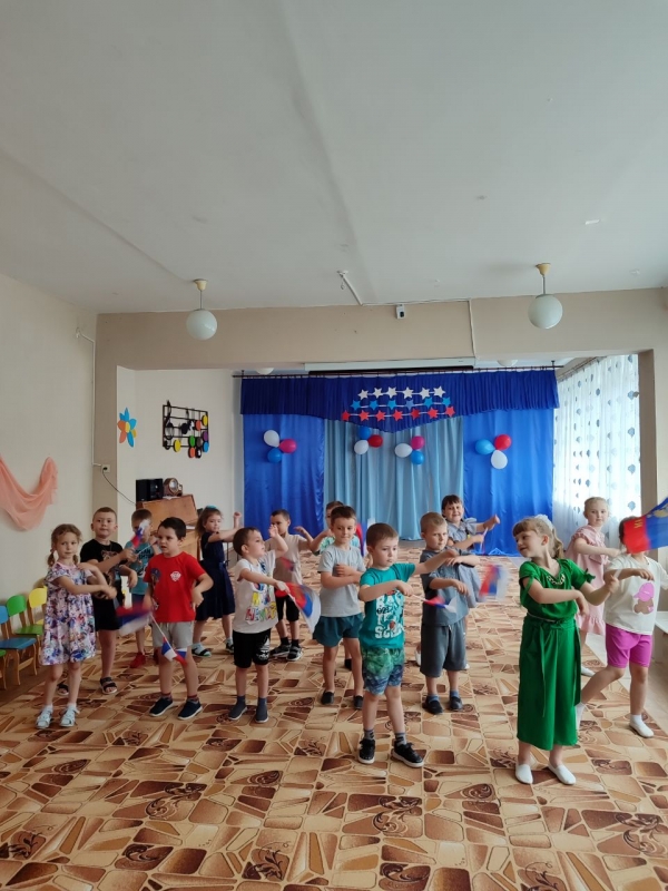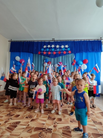 В преддверии Дня России, в ГБДОУ ЛНР «Зимогорьевский ясли-сад «Сказка» прошло мероприятие, посвященное этому важному событию. Это отличный повод рассказать детям еще раз об истории нашей огромной многонациональной страны. В рамках праздника, для ребят в музыкальном зале были организованы игры, старшие дошкольники пели, танцевали и рассказывали стихи. Во время подготовки ко Дню России в детском саду проводились различные мероприятия, направленные на воспитание у детей нравственно-патриотических чувств любви к своей Родине – России. Ведь наша страна великая и могучая держава, и каждый гражданин по праву гордиться ею.Это мероприятие не только укрепило знания наших малышей о России, но и взрастило дух дружбы и сотрудничества. Мы гордимся тем, что воспитываем в наших детях чувство