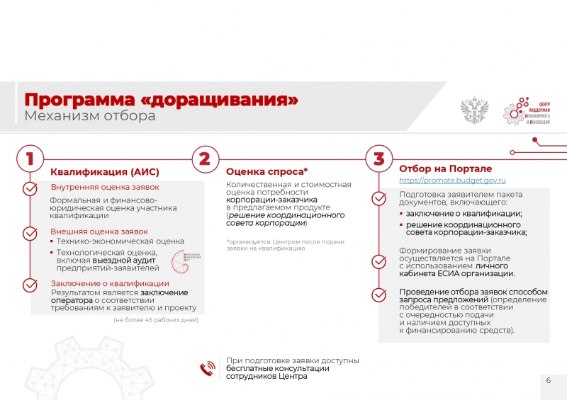 Для получения подробных консультаций об условиях участия в программе можно обратиться в Центр поддержки по телефону +7 (495) 150-25-84, доб. 205, 605 или электронной почте ask@inno-sc.ru.