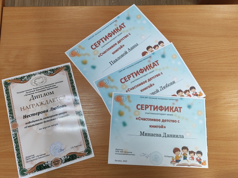 Участники акции от Славяносербской центральной детской библиотеки получили именные сертификаты, и диплом победителя интернет-акции!